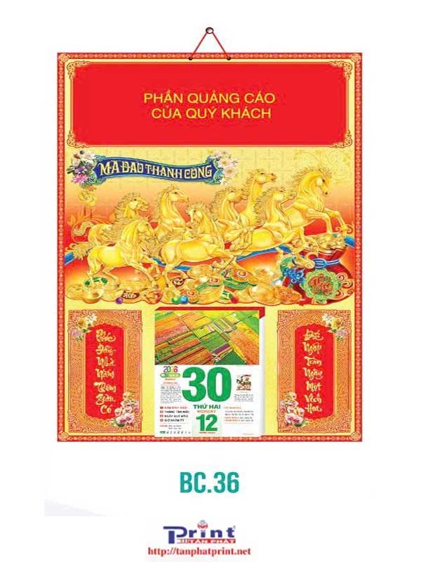 MẪU LỊCH BLOC – KHUNG VÀNG DÁN NỔI 3D – SONG MÃ HƯNG LỘC | BC.30