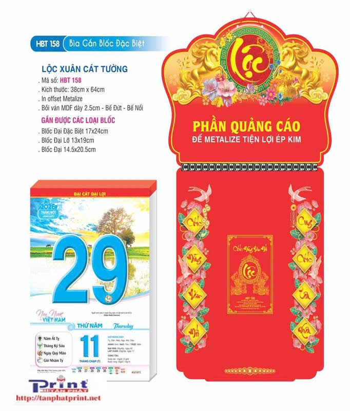MẪU LỊCH BLOC – GẮN BLOC ĐẶC BIỆT – LỘC XUÂN CÁT TƯỜNG | HBT158