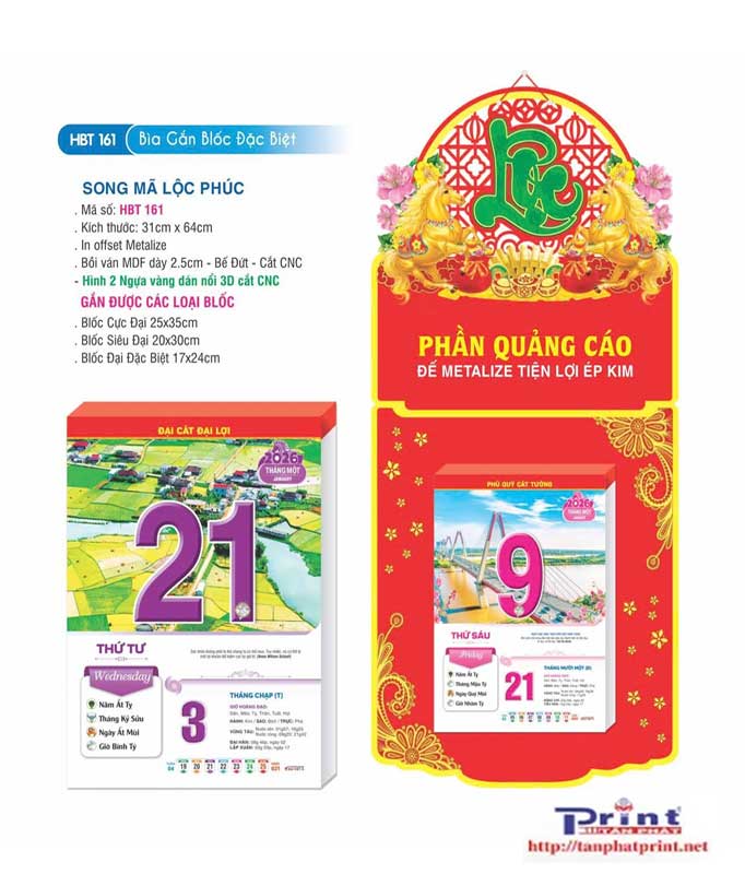 MẪU LỊCH BLOC – GẮN BLOC ĐẶC BIỆT – SONG MÃ LỘC PHÚC | HBT161