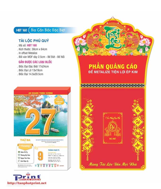 MẪU LỊCH BLOC – GẮN BLOC ĐẶC BIỆT – TÀI LỘC PHÚ QUÝ | HBT160