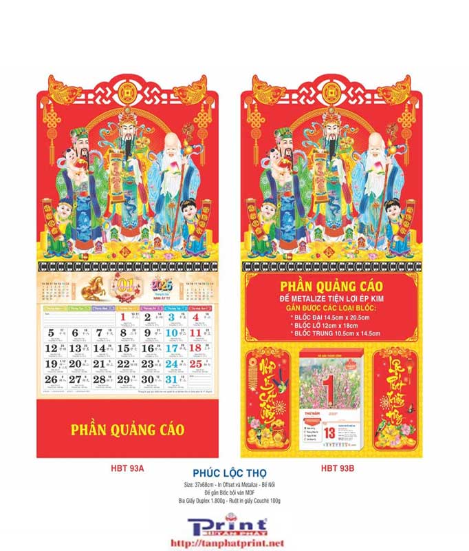 MẪU LỊCH BLOC – LÒ XO GIỮA BỘ SỐ GẮN BLOC – PHÚC LỘC THỌ | HBT93A-93B