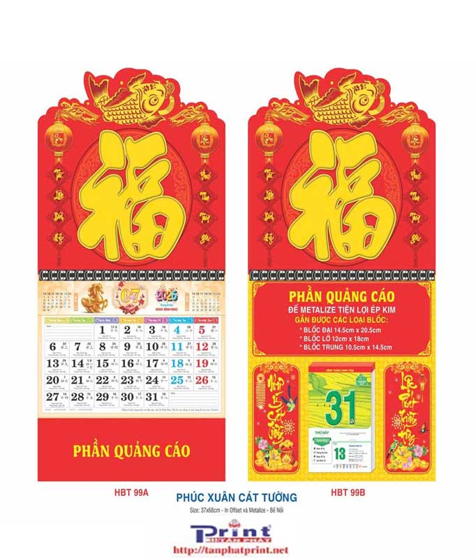 MẪU LỊCH BLOC – LÒ XO GIỮA BỘ SỐ GẮN BLOC – PHÚC XUÂN CÁT TƯỜNG | HBT99A-99B