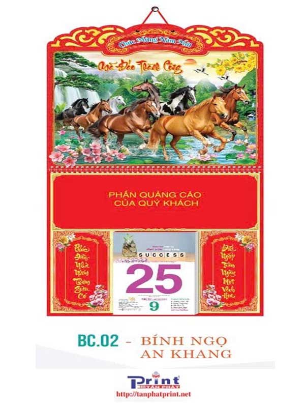 MẪU LỊCH BLOC – KHUNG VÀNG DÁN NỔI 3D – SONG MÃ BÁCH TÀI | BC.24