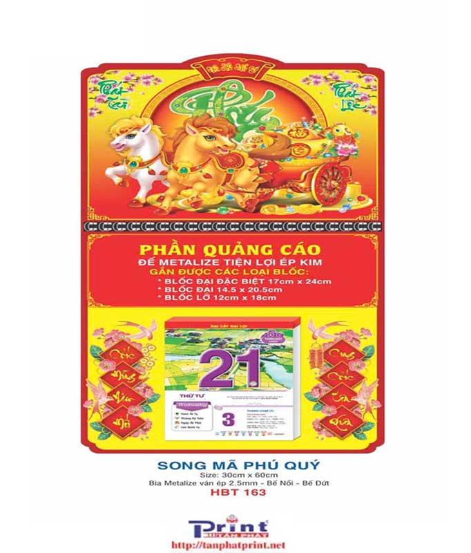MẪU LỊCH BLOC – GẮN BLOC ĐẶC BIỆT – SONG MÃ LỘC PHÚC | HBT161