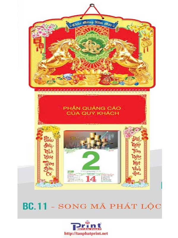 MẪU LỊCH BLOC – LÒ XO GIỮA MINI – SONG MÃ PHÁT LỘC | BC.11