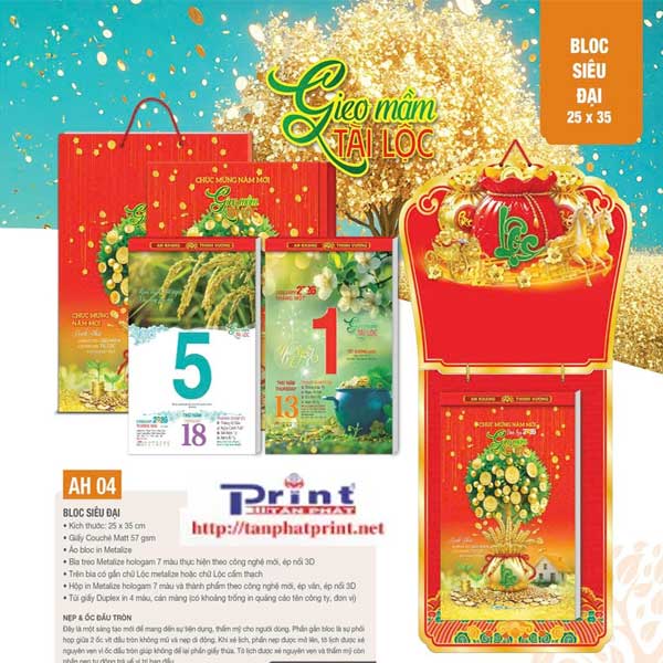 MẪU LỊCH BLOC SIÊU ĐẠI – GIEO MẦM TÀI LỘC | AH04